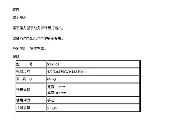 免扣钢带打包机一般适用于平面包装,例如箱体、栈板和其他各式类似的包装形式,免扣钢带打包机不需要使用另外的钢扣;其特点主要在于免扣连接的平均抗拉强度约为钢带抗拉强度的80%,十分可靠,并且可以节约大约10%的整体包装成本。应用于几乎所有领域的通用型钢带打包工具,使用可靠,设计坚固,易于操作并且较为轻便。
