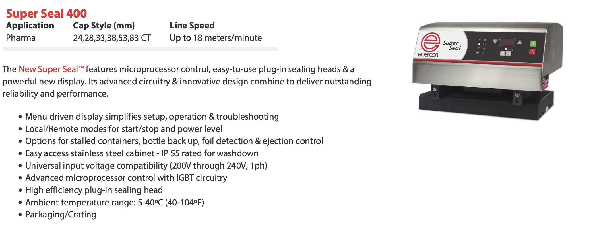 美国ENERCON 铝箔封口感应线圈SUPER SEAL 400