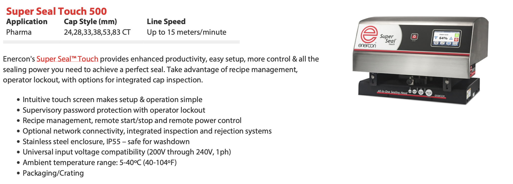 美国ENERCON铝箔封口机封口头SUPER SEAL 500