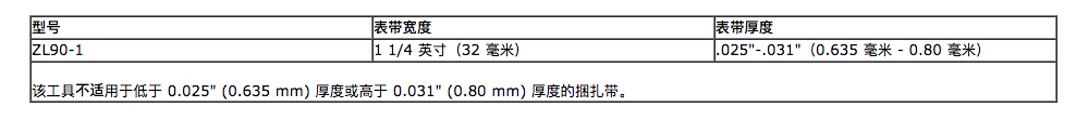 ZL90系列工具是最新的创新产品,专为高强度钢带(高达156000磅/平方英寸/1100牛顿/平方毫米)而设计,也可与常规钢带一起使用,以大大提高耐用性。适用于尺寸从1 1/4“x.025”(32 mm x 0.635 mm)到1 1/4”x.031”(32毫米x 0.80 mm)的捆扎带。